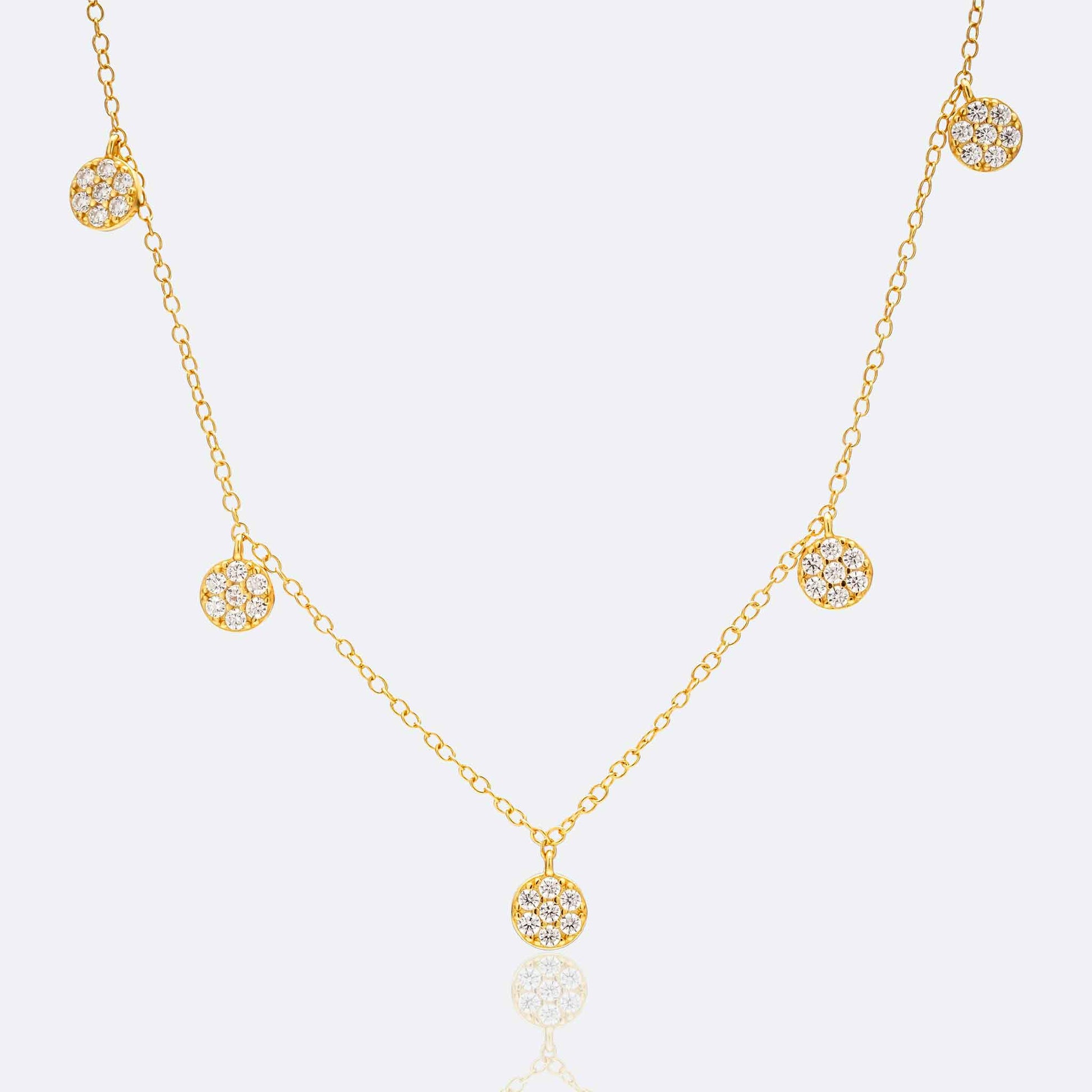 A customer favourite and the ultimate layering essential, this delicate chain features five shimmering charms that catch the light beautifully. Perfect for stacking with your favourite pendant necklaces or wearing solo for an understated touch of sparkle.