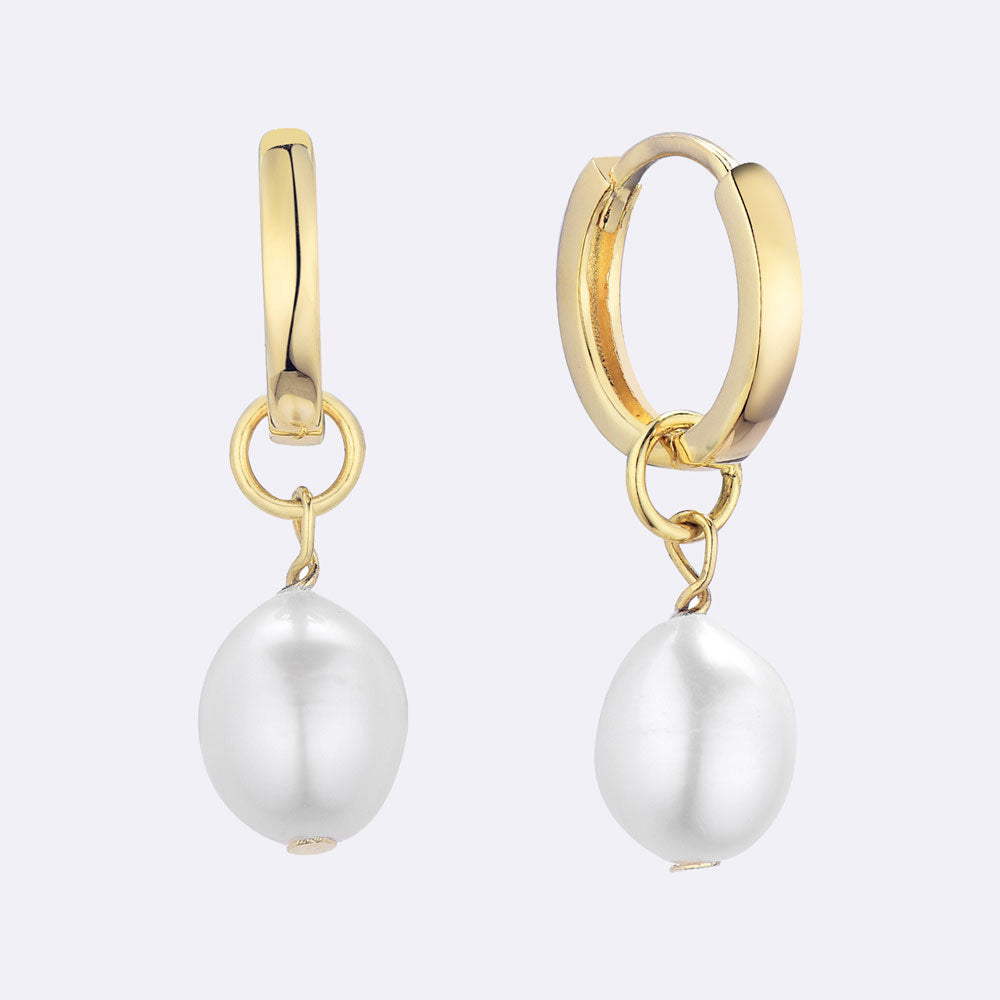 Pearl Drop Huggie Hoop Earrings