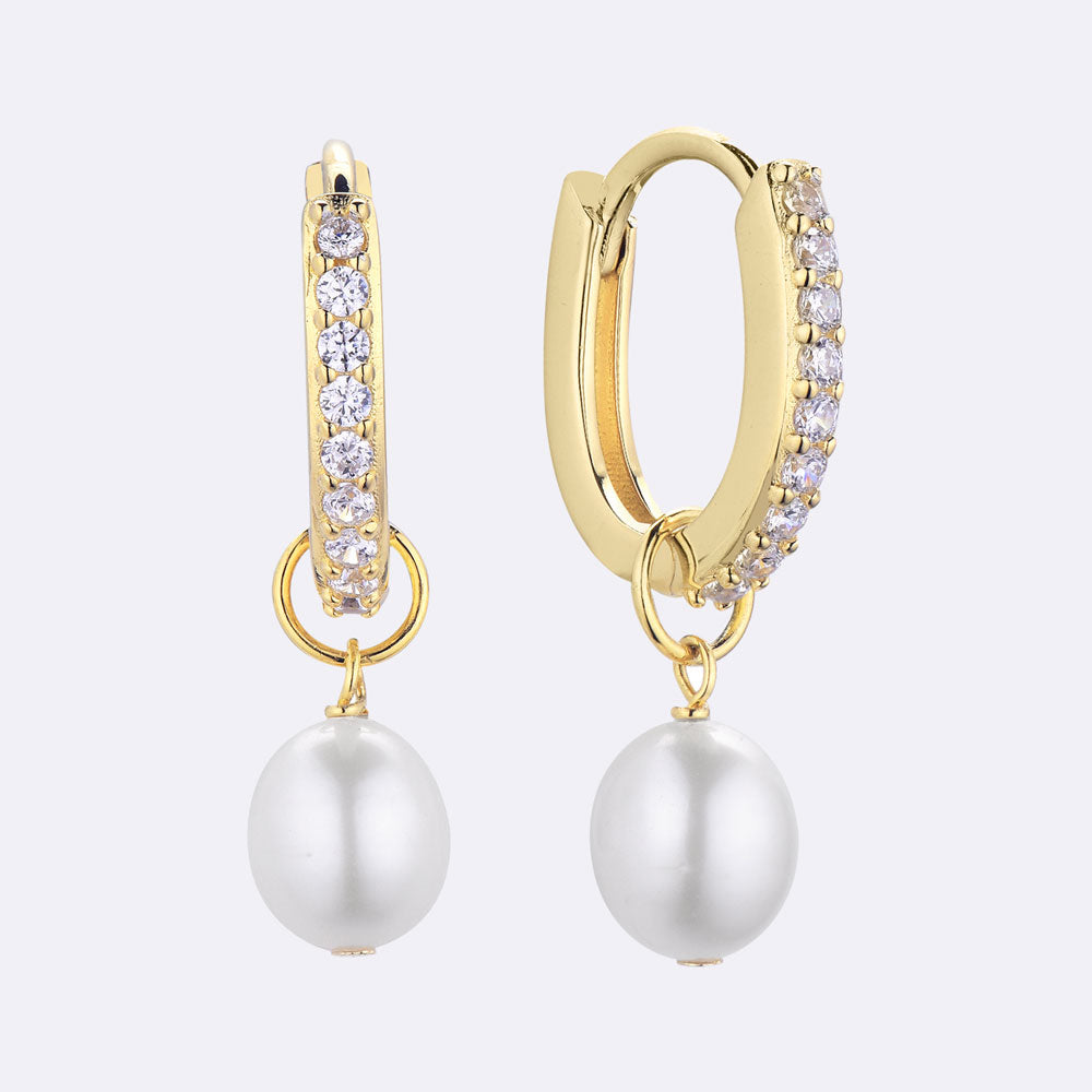 Crafted from 100% recycled sterling silver with your choice of silver or gold plating, these hoops feature a detachable freshwater pearl drop for versatile styling. Wear with the pearl for a classic look or change it up to a sparkly hoop.
